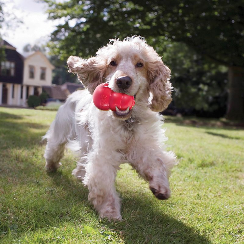 Psiak może ją gryźć, wylizywać zawartość oraz aportować.
